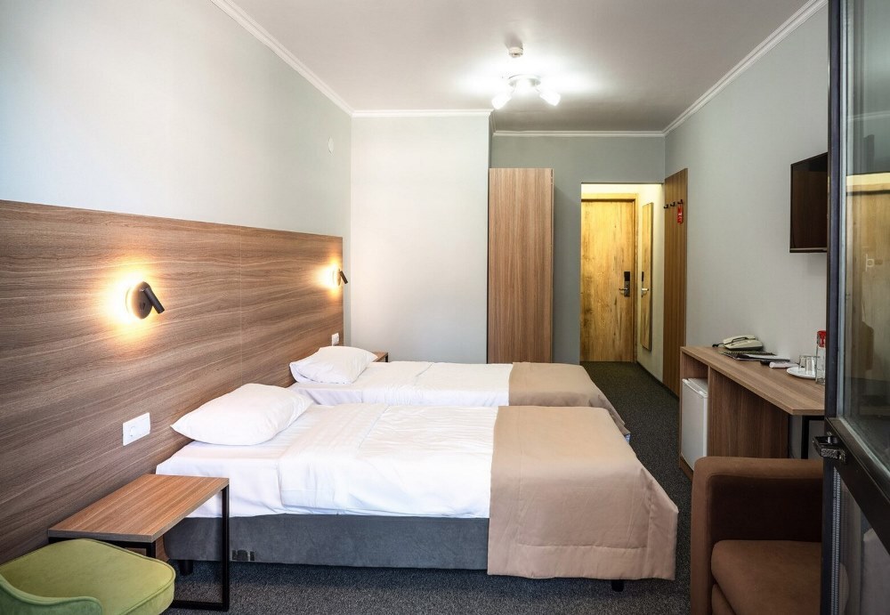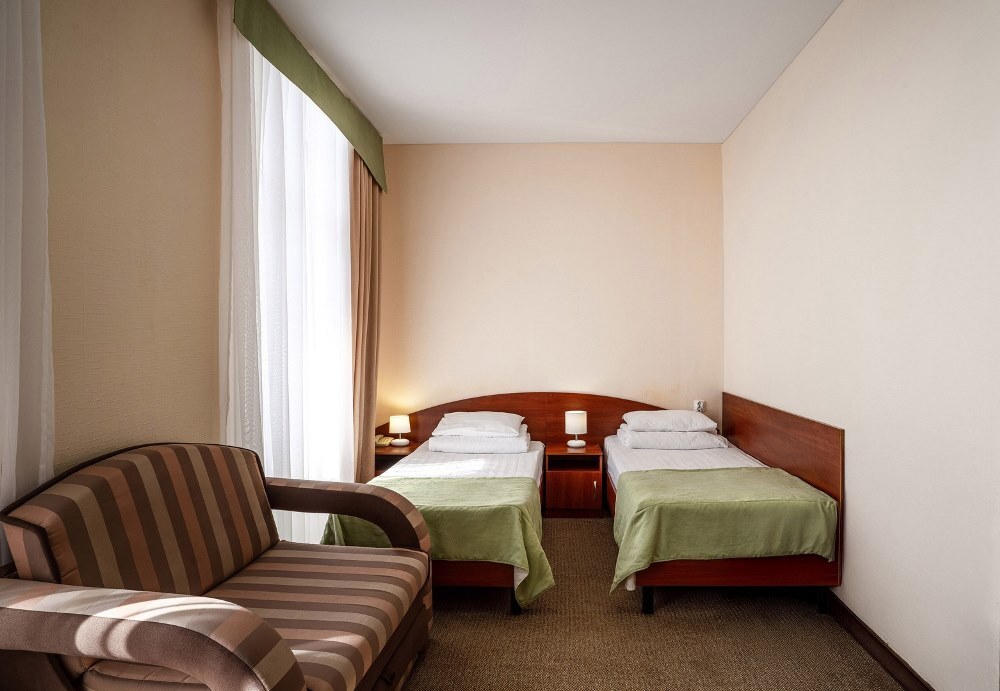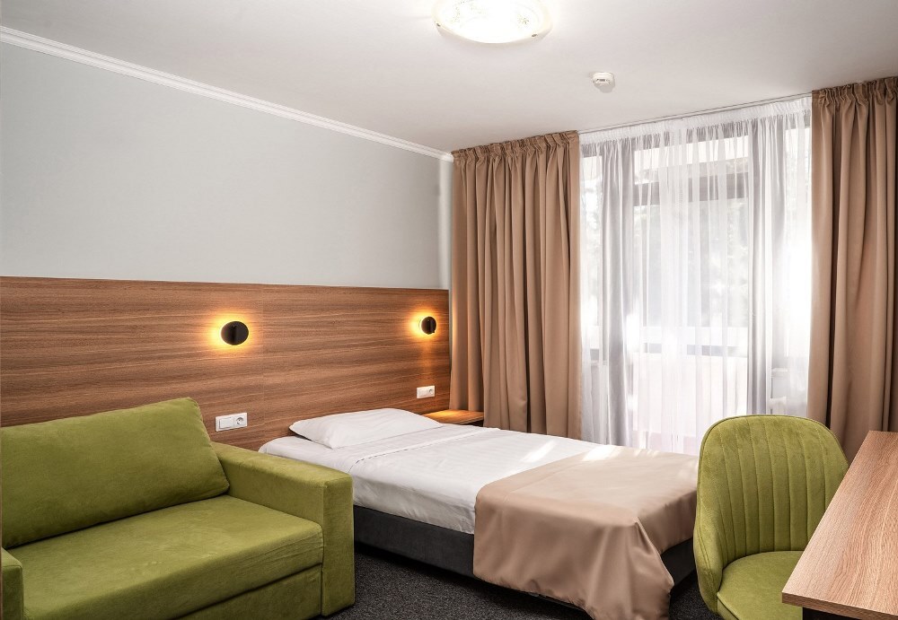 Однокомнатный номер. Номера расположены в корпусах № 2, 6. В номере есть все, необходимое для отдыха и оздоровления. Если Вам нужна дополнительная уборка, дополнительная смена постельного белья, туалетные принадлежности, обратитесь к сотрудникам отдела приема и размещения - услуга платная. Халат и одноразовые тапочки Вы можете взять в аренду на весь срок отдыха – услуга платная.