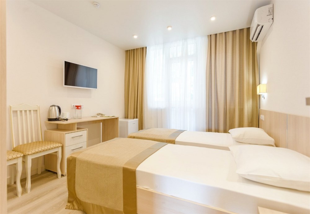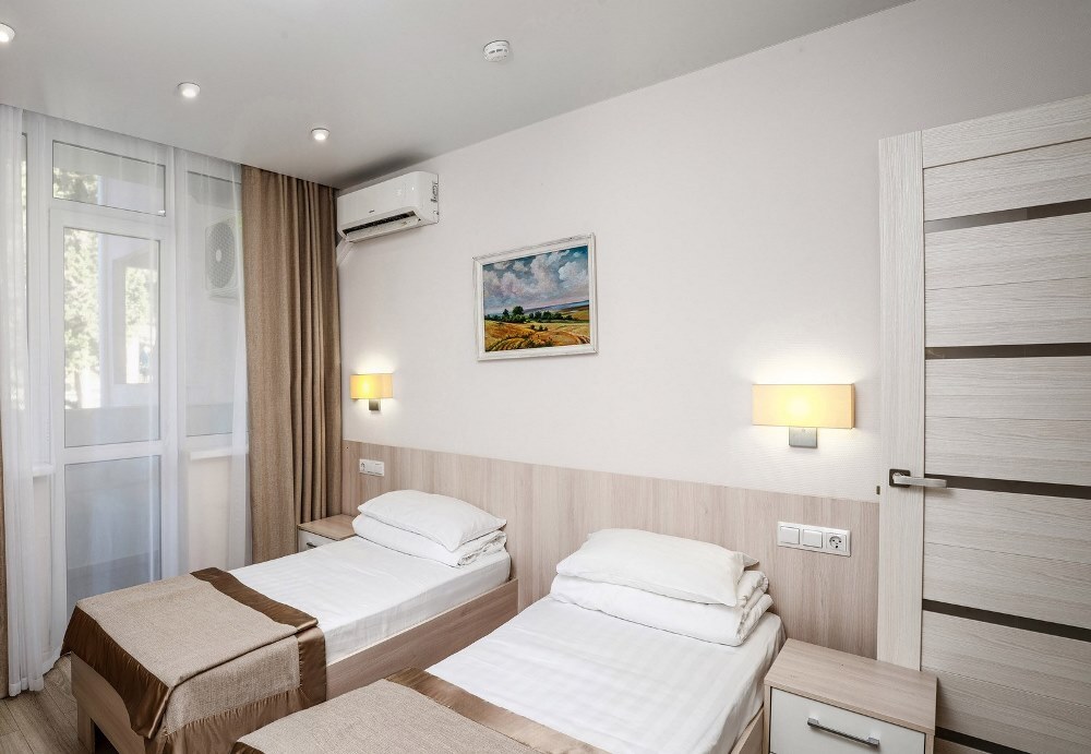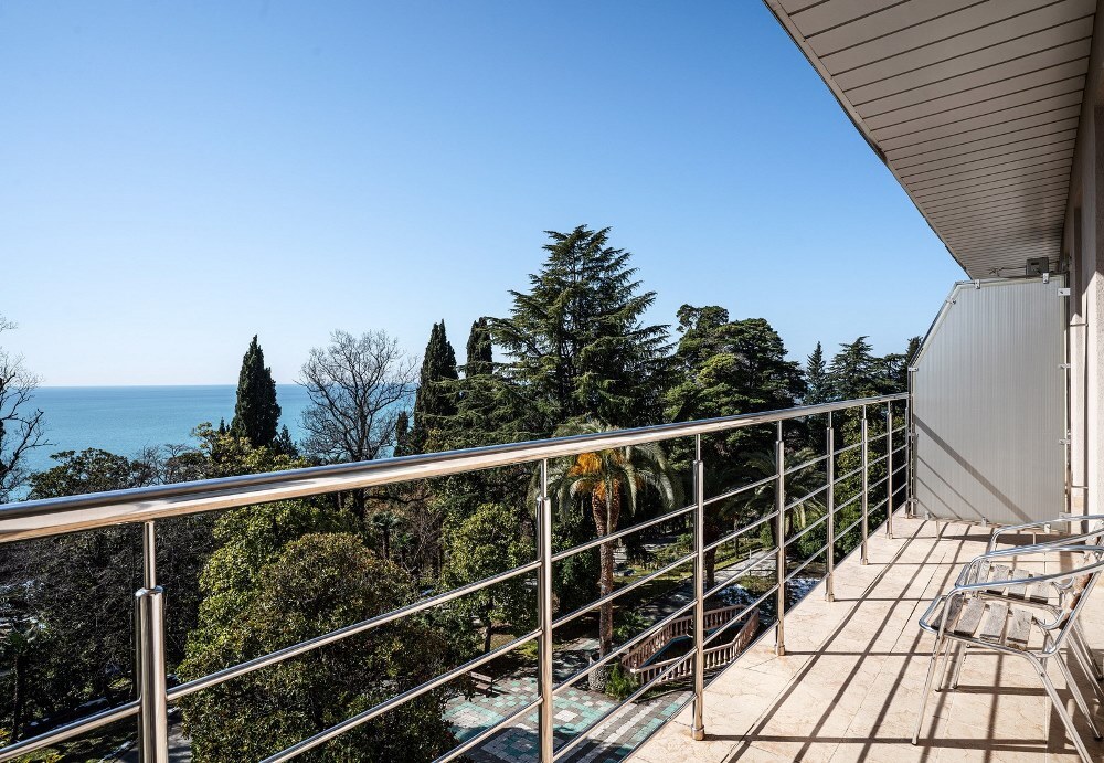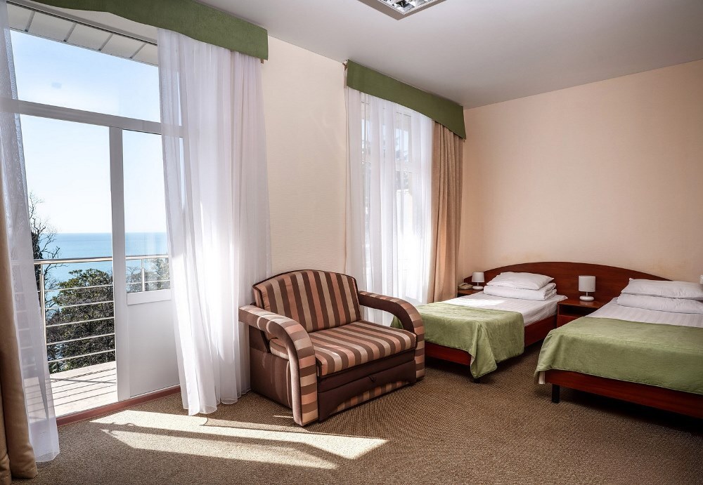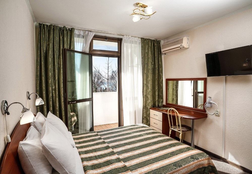 Однокомнатный номер. Номера расположены в корпусе № 6 на 5 этаже с панорамным видом на море. Номер оснащен халатами и тапочками. Номер, разделенный на гостиную и спальную зону. В номере есть все, необходимое для отдыха и оздоровления.