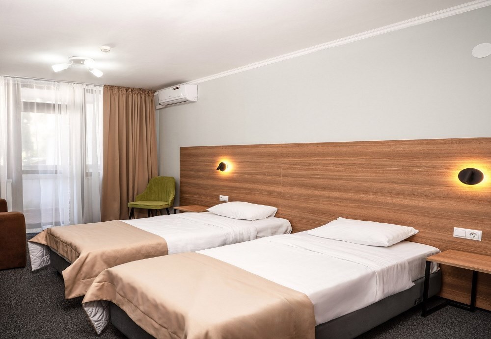 Четырехместный двухкомнатный номер. Номера расположены в корпусах № 1, 3. В каждой комнате имеется отдельный балкон. В номере есть все, необходимое для отдыха и оздоровления.